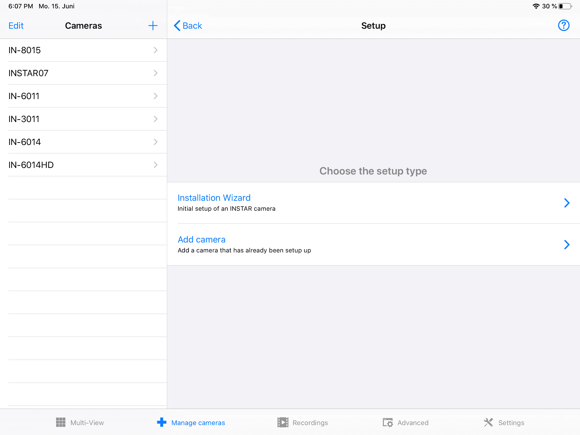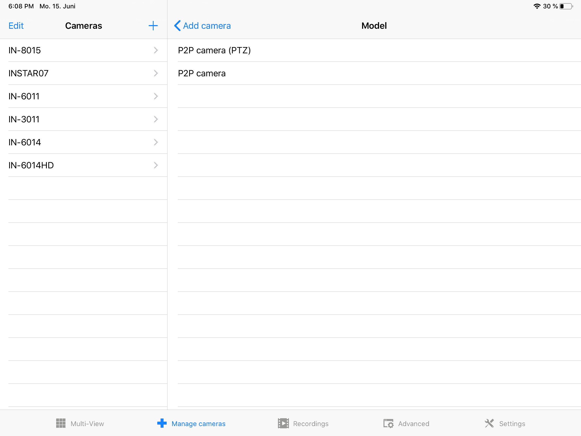 - [04] Sobald Ihre Kamera angeschlossen ist, klicken Sie auf Suchen und die App wird alle INSTAR-Kameras in Ihrem lokalen Netzwerk erkennen. Wenn Ihre Kamera nicht angezeigt wird, wählen Sie manuell hinzufügen.