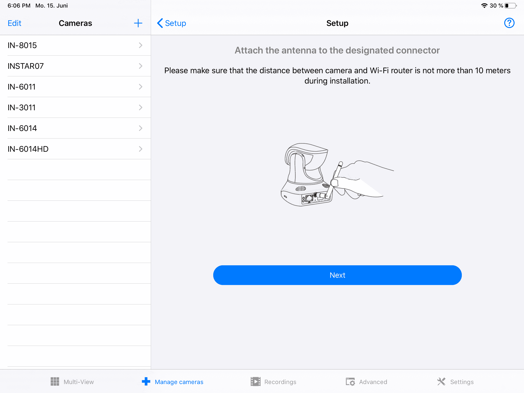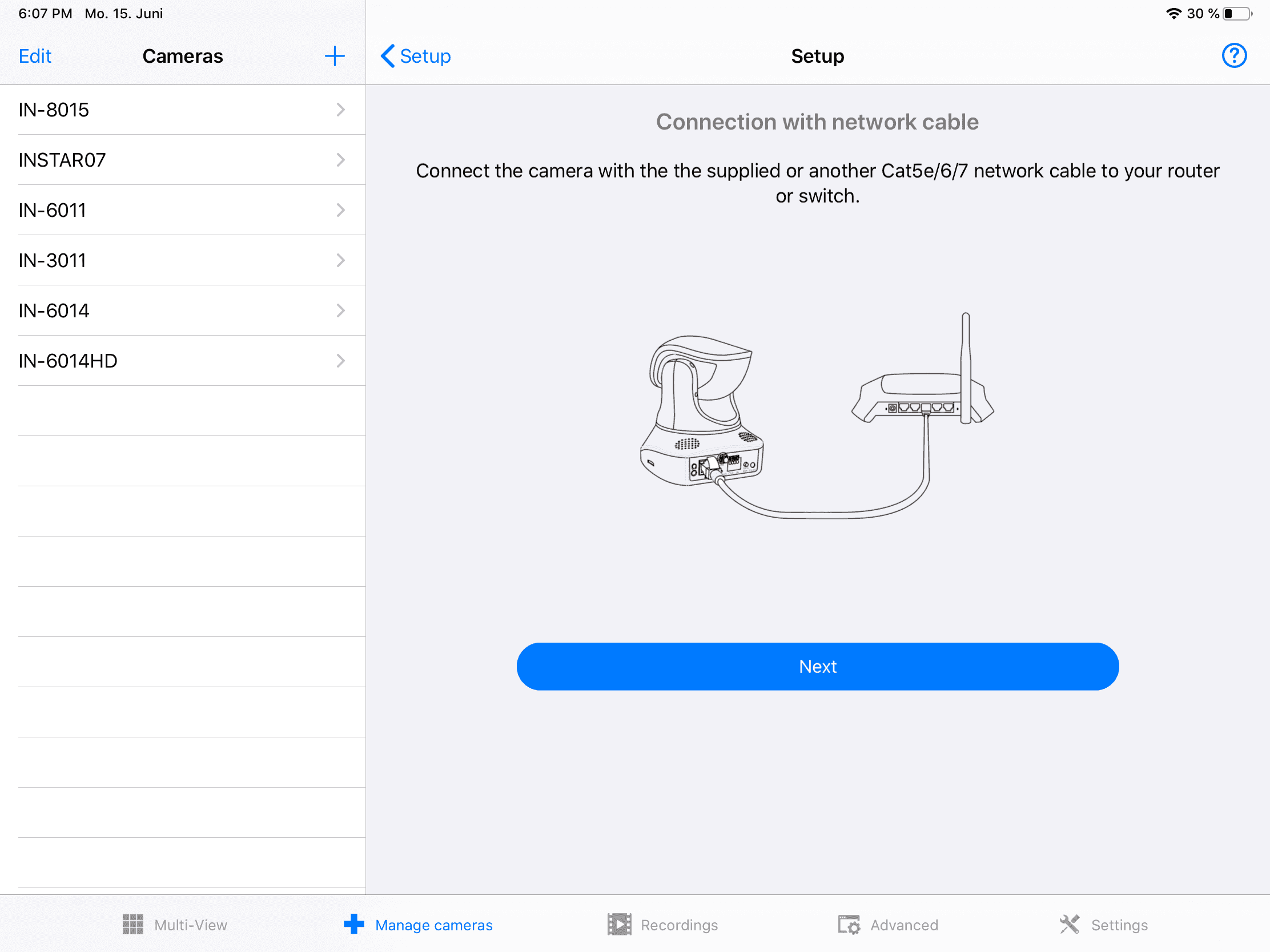- [01] Beginnen Sie mit dem Menü Kameras und wählen Sie den Installationsassistenten.