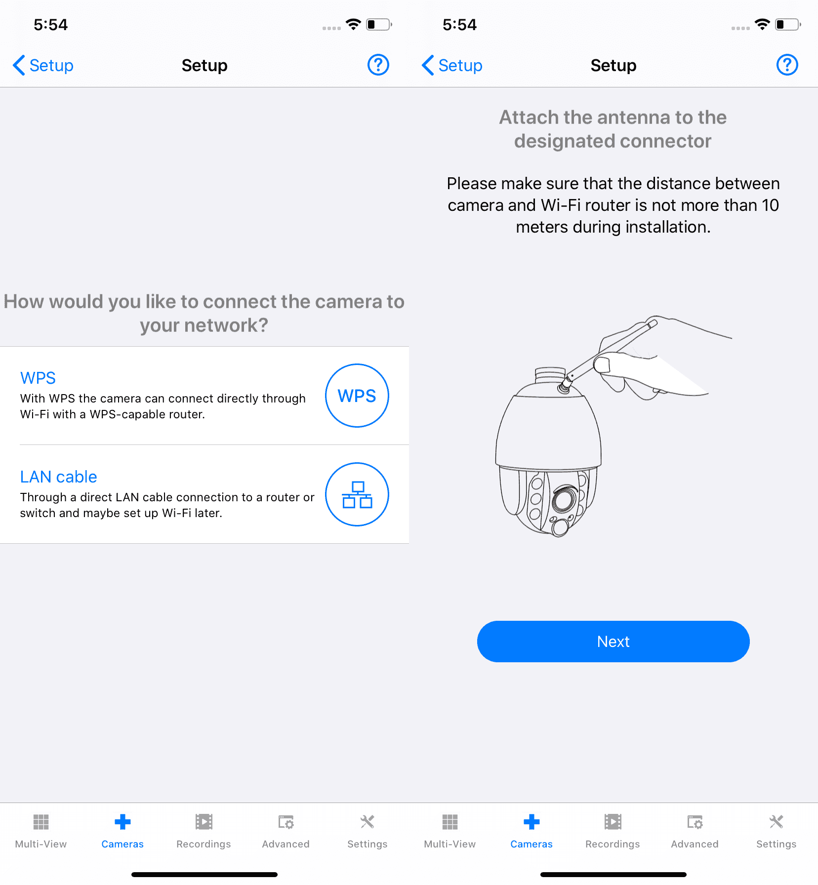 - [05] Wählen Sie, ob Ihre Kamera über WiFi angeschlossen werden soll oder ob Sie ein Ethernet-Kabel verwenden.