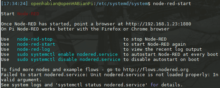You can also activate a SystemD job to automatically restart Node-RED when you restart your Pi using the command sudo systemctl enable nodered.service: